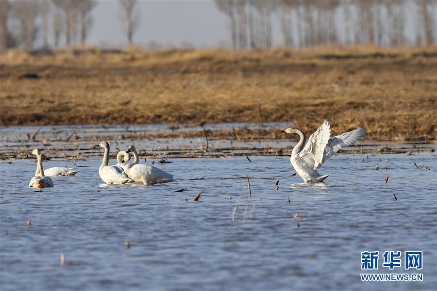 这是4月2日在杭锦旗独贵塔拉镇的黄河浅滩拍摄的天鹅。