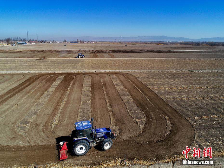 4月仲春时节,甘肃2700亩金张掖供港蔬菜基地里,拖拉机正在阡陌田野里耕作,一派春耕大忙景象。图为拖拉机正在田野里耕作。成林 摄