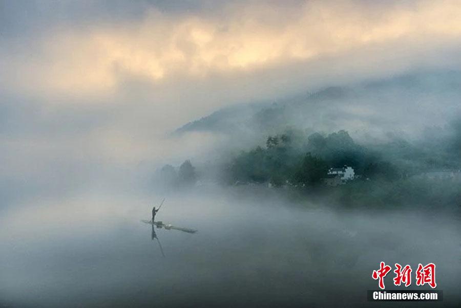 安徽泾县桃花潭畔云雾景观宛如仙境