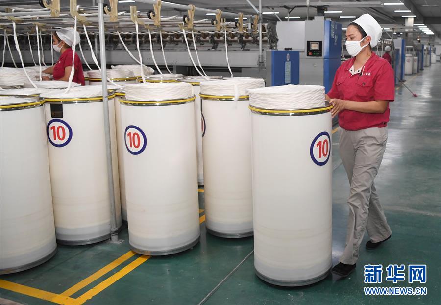 10月27日,新疆阿瓦提县新疆鲁泰丰收棉业有限责任公司工人在棉纺厂工作。新华社记者 沙达提 摄