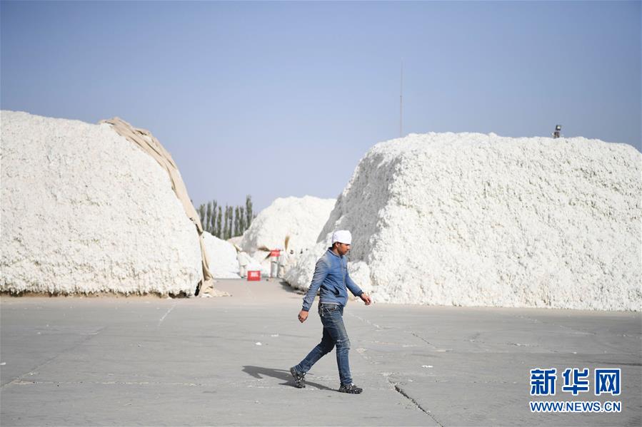 10月27日,新疆阿瓦提县新疆鲁泰丰收棉业有限责任公司工人在棉花加工厂工作。新华社记者 沙达提 摄