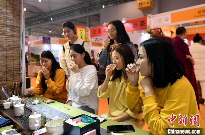 民众在茶博会上品茶。 安源 摄