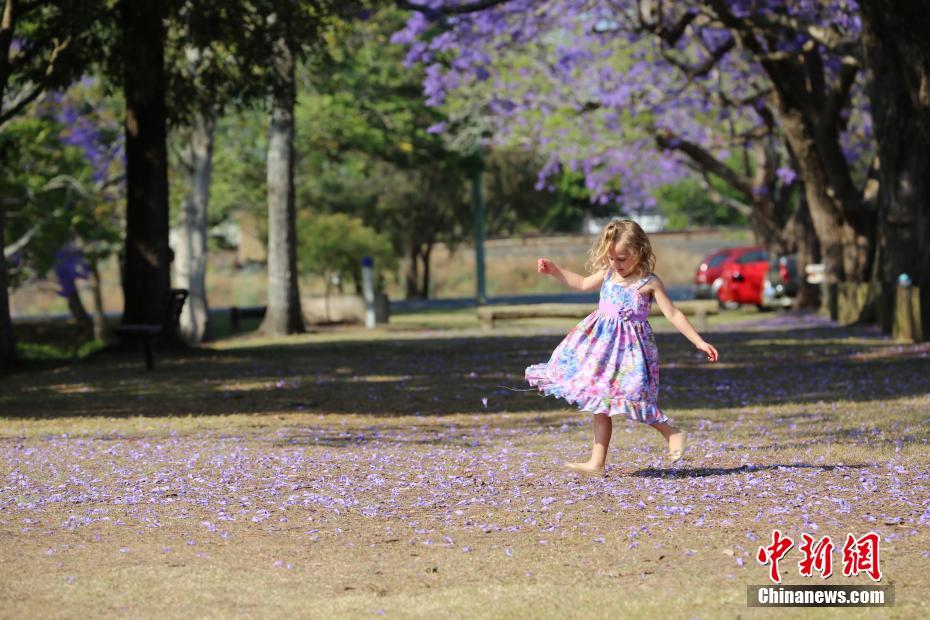 10月31日,小女孩在蓝花楹树下翩翩起舞。
