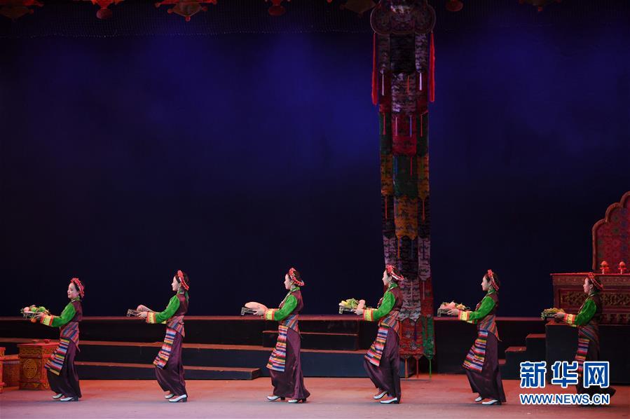 11月3日,在福建省福州市芳华剧院,西藏自治区藏剧团的演员在表演藏戏《六弦情缘》。新华社记者 宋为伟 摄