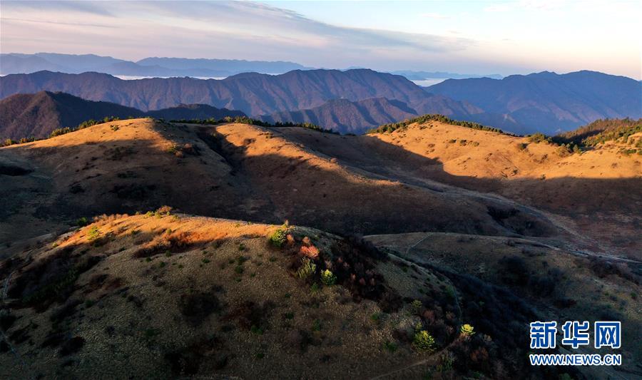 位于陕西省岚皋县与重庆市城口县交界处的大巴山神田草甸草色金黄,山峦起伏,美不胜收。 新华社记者 陶明 摄