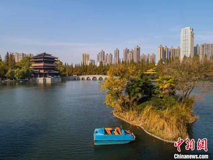 图为无人机拍摄的安徽省合肥市逍遥津公园披上了秋日的金黄。 张大岗 摄