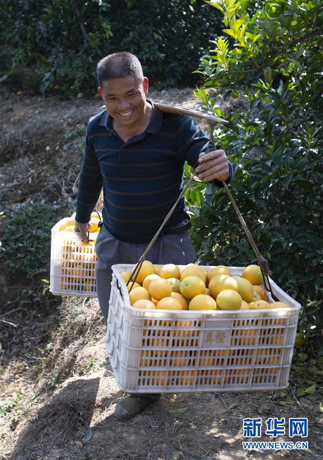 11月14日,赣州市赣县区王母渡镇潭埠村的果农运送脐橙。新华社记者张浩波摄