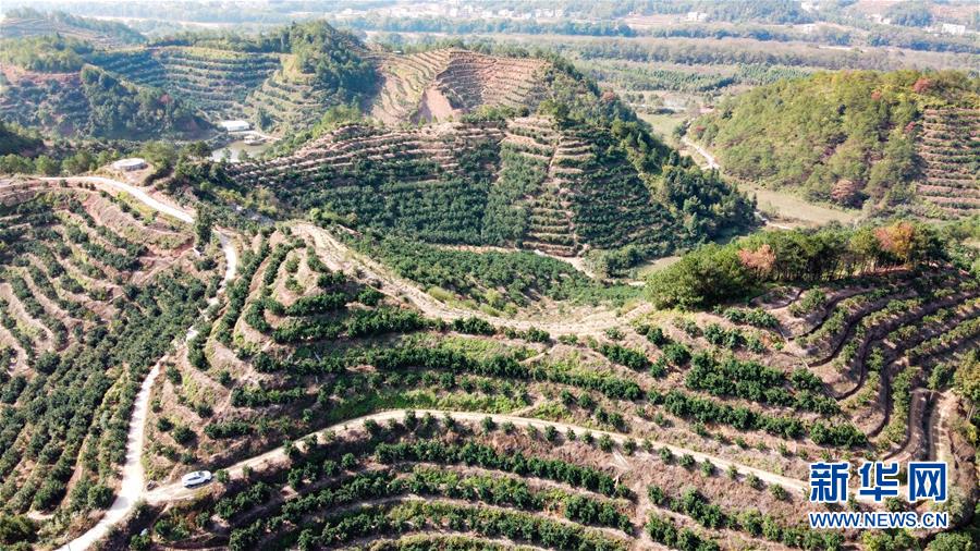 11月14日在赣州市赣县区王母渡镇潭埠村拍摄的脐橙基地(无人机拍摄)。新华社记者张浩波摄