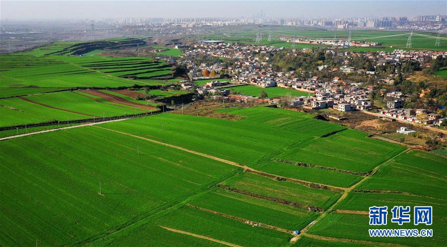 11月14日无人机拍摄的西安神禾原冬小麦。 初冬时节,陕西西安长安区神禾原上满眼新绿,初生的冬小麦生机盎然,像张张绿毯铺展在大地上。 新华社记者 刘潇 摄
