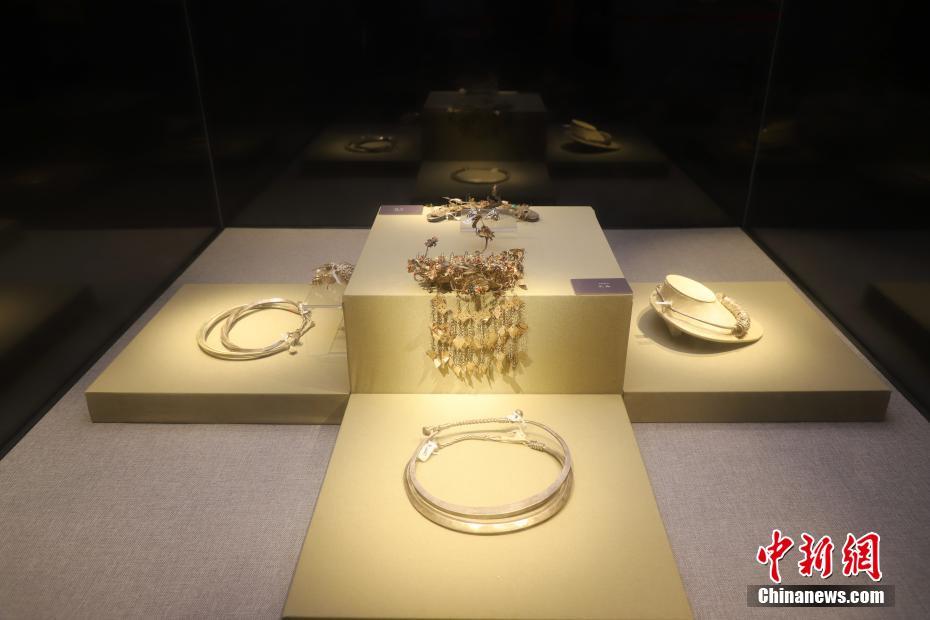 11月16日,博物馆内展出的水族银饰。“水族文化博物馆”位于中国唯一的水族自治县——贵州省黔南布依族苗族自治州三都水族自治县。馆内设有两大展区、6大板块、31个展位,以图片、文字、实物等多种形式结合,展示了水族概况、水族文化、习俗与节日等内容。中新社记者 瞿宏伦 摄