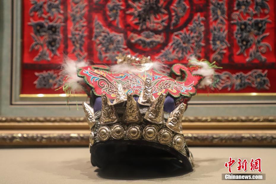 11月16日,博物馆内展出的水族马尾绣儿童帽。“水族文化博物馆”位于中国唯一的水族自治县——贵州省黔南布依族苗族自治州三都水族自治县。馆内设有两大展区、6大板块、31个展位,以图片、文字、实物等多种形式结合,展示了水族概况、水族文化、习俗与节日等内容。中新社记者 瞿宏伦 摄