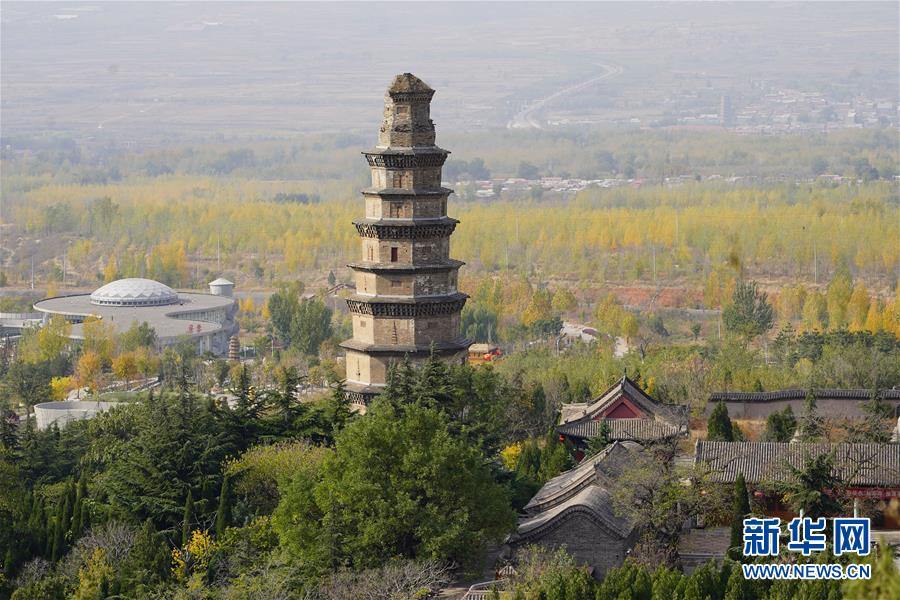 这是11月12日无人机拍摄的邯郸峰峰矿区响堂山风景区常乐寺。 新华社记者 邢广利 摄