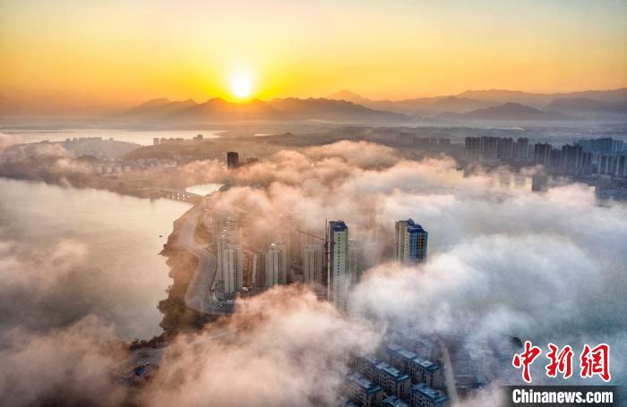 城市中的建筑物“缠绕”其中,犹如仙境。 罗鑫钢 摄