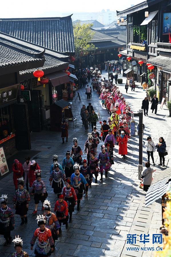 12月7日,苗族群众在参加“祭尤节”盛装巡游。新华社记者 杨文斌 摄
