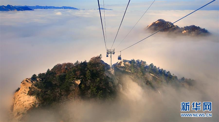云海中的华山太华索道(资料照片)。 新华社发(侯怀礼 摄)