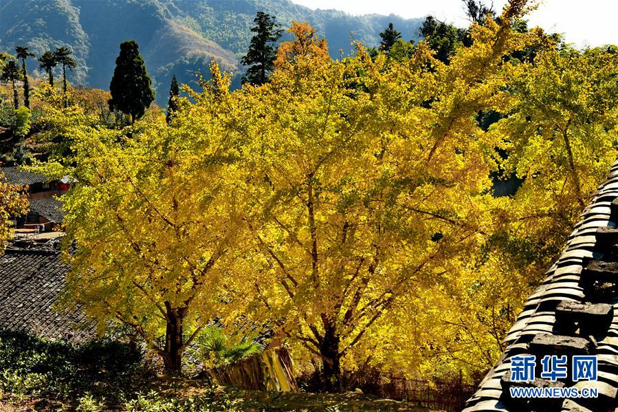 12月8日在政和县铁山镇大岭村拍摄的银杏树。冬日,福建省政和县铁山镇大岭村的银杏树叶一片金黄,美不胜收。新华社记者 张国俊 摄