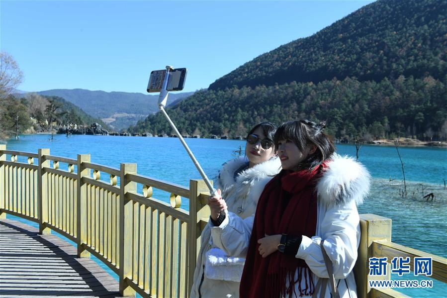 12月10日,游客在蓝月谷风景区拍照留影。新华社记者 杨宗友 摄