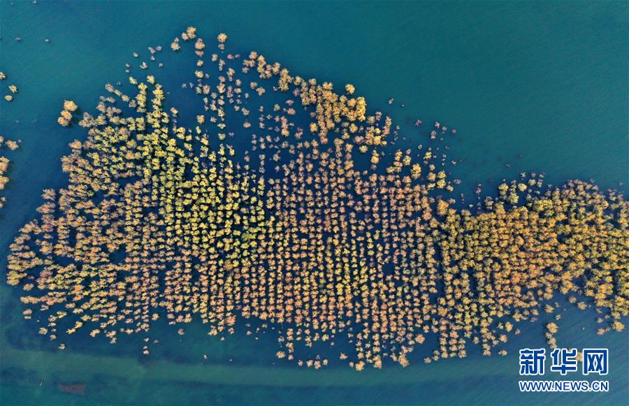 这是12月10日无人机拍摄的河南省南阳市淅川县境内的丹江口水库库区景色。