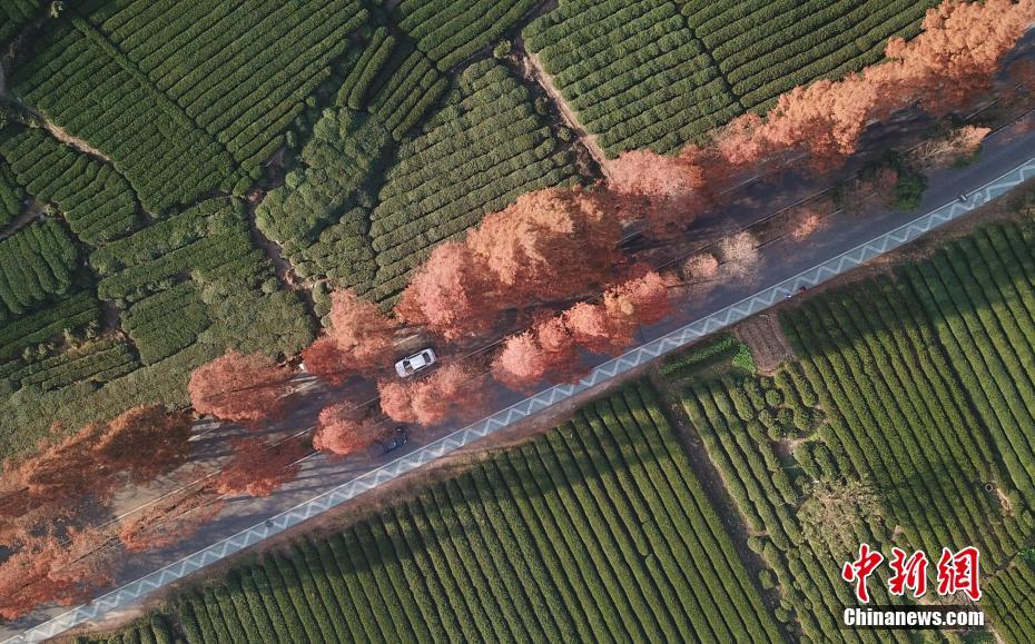 12月10日,航拍浙江杭州龙井茶园景色怡人。中新社记者 王刚 摄