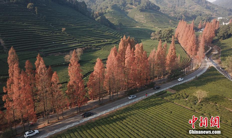 12月10日,航拍浙江杭州龙井茶园景色怡人。中新社记者 王刚 摄