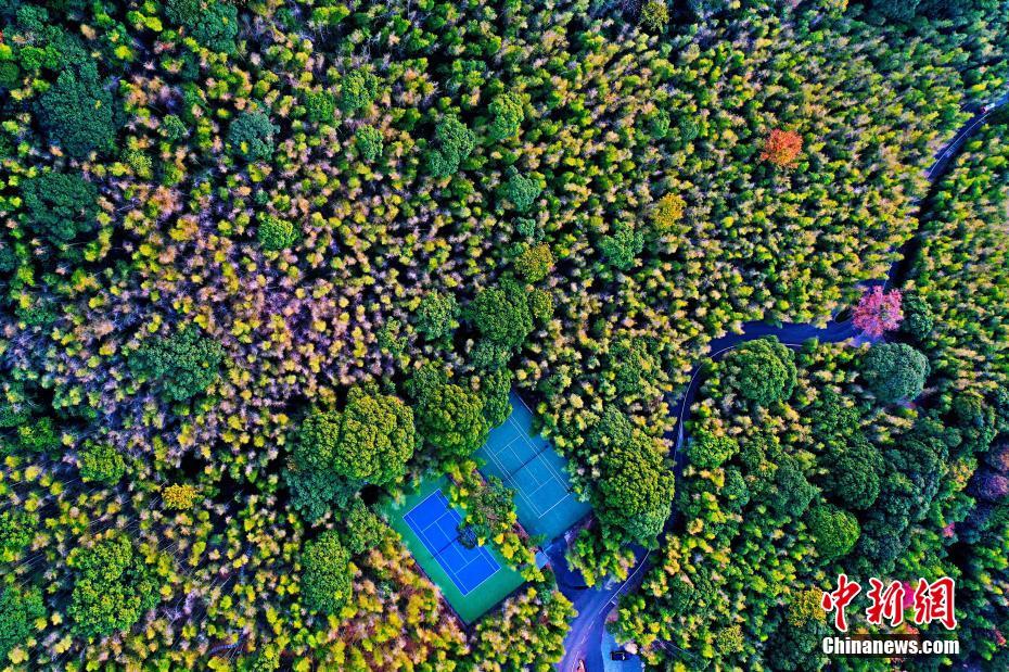 12月10日,航拍下的江西省赣州市大余县丫山风景区。进入冬季的丫山,层林尽染,色彩斑斓,美不胜收。丫山因最高峰双秀峰呈“丫”形而得名,森林覆盖率高达92.6%。刘占昆 摄