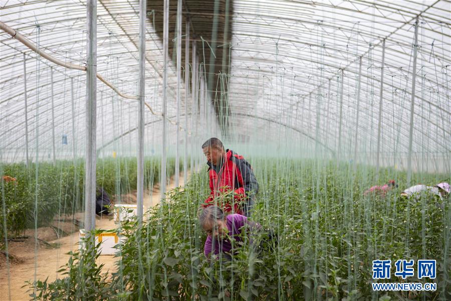 12月18日,在于都县禾丰镇一家富硒蔬菜种植基地,农民在采摘富硒辣椒。新华社记者 张浩波 摄