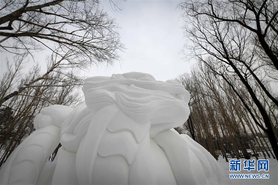 这是获得一等奖及最佳设计奖的景德镇陶瓷大学代表队雪雕作品《灵运千年》(1月6日摄)。 1月6日,第七届“冬之韵”全国大学生雪雕比赛在哈尔滨太阳岛雪博会园区落幕。 新华社记者 王松 摄
