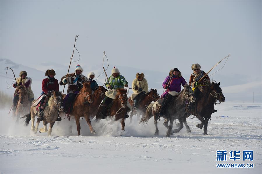 1月6日,演员在乌兰布统草原马文化摄影节上进行骑马表演。 当日,第三届乌兰布统(坝上)草原马文化摄影节在内蒙古克什克腾旗乌兰布统草原开幕,骑马拾哈达、骑马表演、套马表演等具有民族风情的活动吸引众多游客和摄影爱好者前来观赏、拍摄。该摄影节是克什克腾第十三届冬季旅游节活动之一,将持续至1月8日。 新华社发(李志鹏摄)