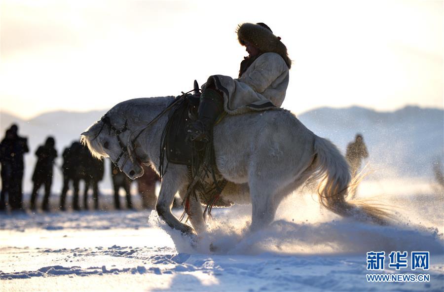 1月6日,演员在乌兰布统草原马文化摄影节上进行骑马表演。