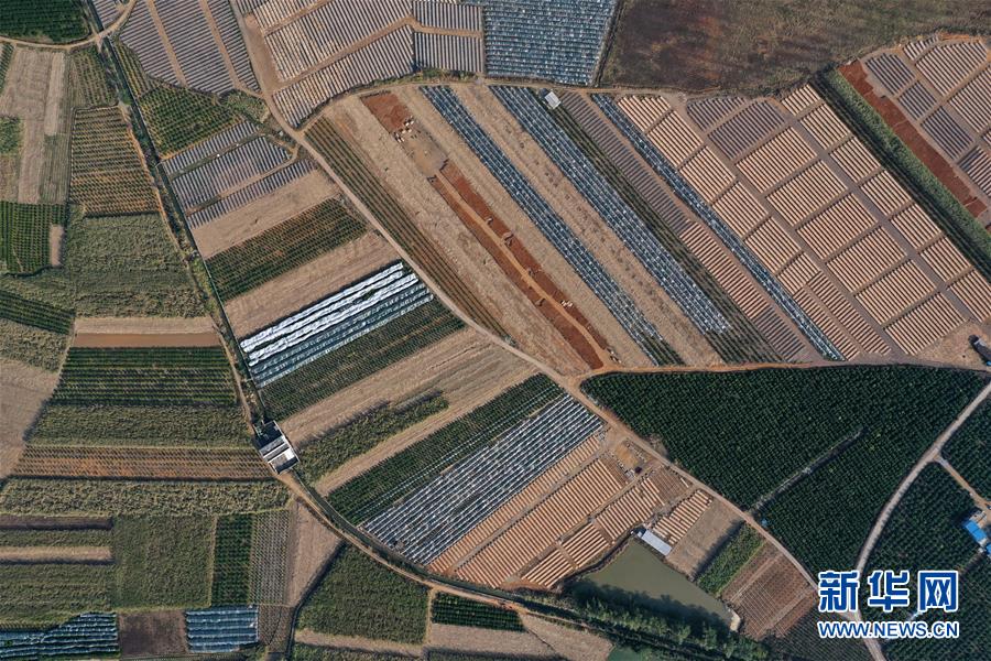 这是柳州市鹿寨县鹿寨镇的冬日田园风光(1月12日无人机照片)。