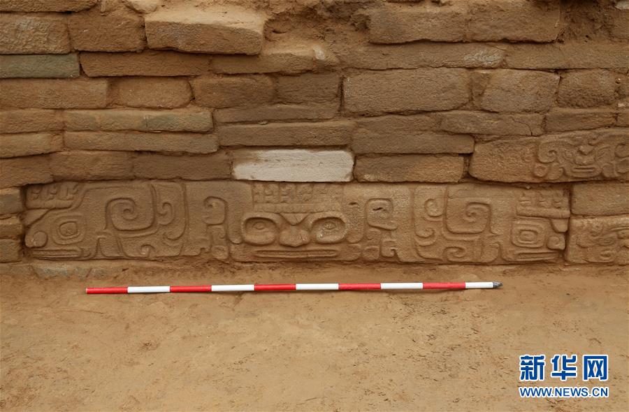 这是陕西石峁遗址皇城台大台基南护墙出土的石雕(2018年11月11日摄)。新华社发