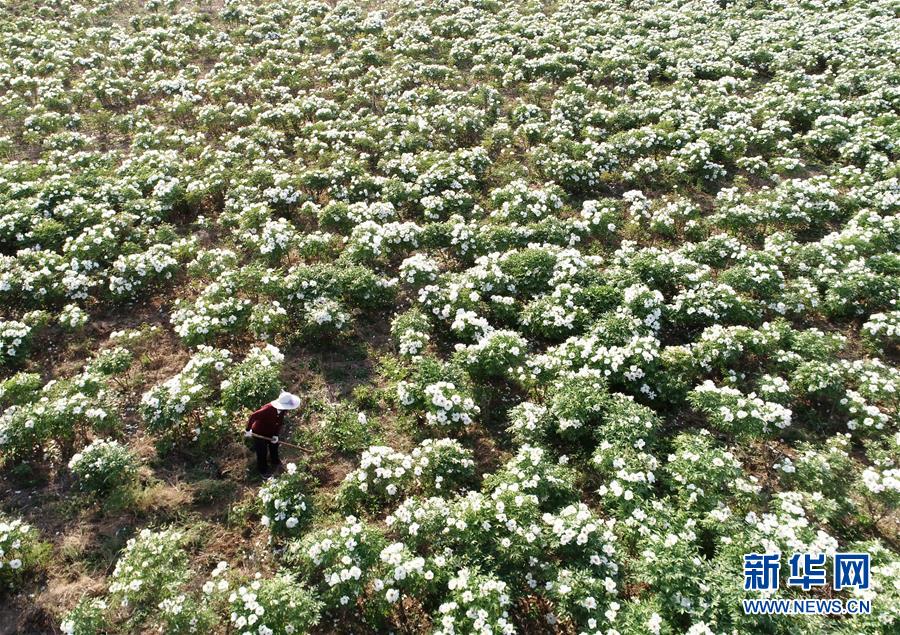 4月22日,农民在河北省沙河市兴固村油牡丹种植基地内劳作(无人机照片)。 近年来,河北省沙河市在推进农业产业结构调整过程中,引导农民发展油牡丹种植,并通过打造油牡丹生产基地实现规模化发展,带来良好收益。目前,沙河市油牡丹种植面积达3000余亩。 新华社记者 牟宇 摄