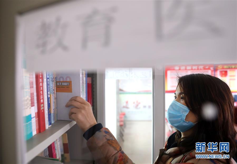 4月22日,一名村民在鞍山市海城市腾鳌镇北石桥村农家书屋查找书籍。