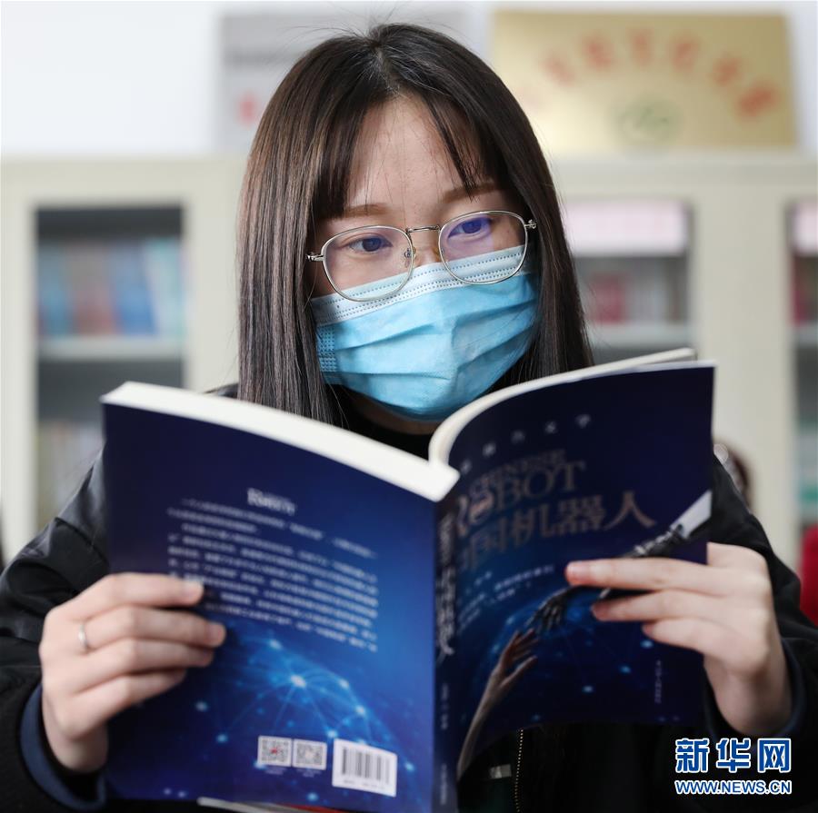 4月22日,一名村民在鞍山市海城市腾鳌镇保安村农家书屋阅读书籍。