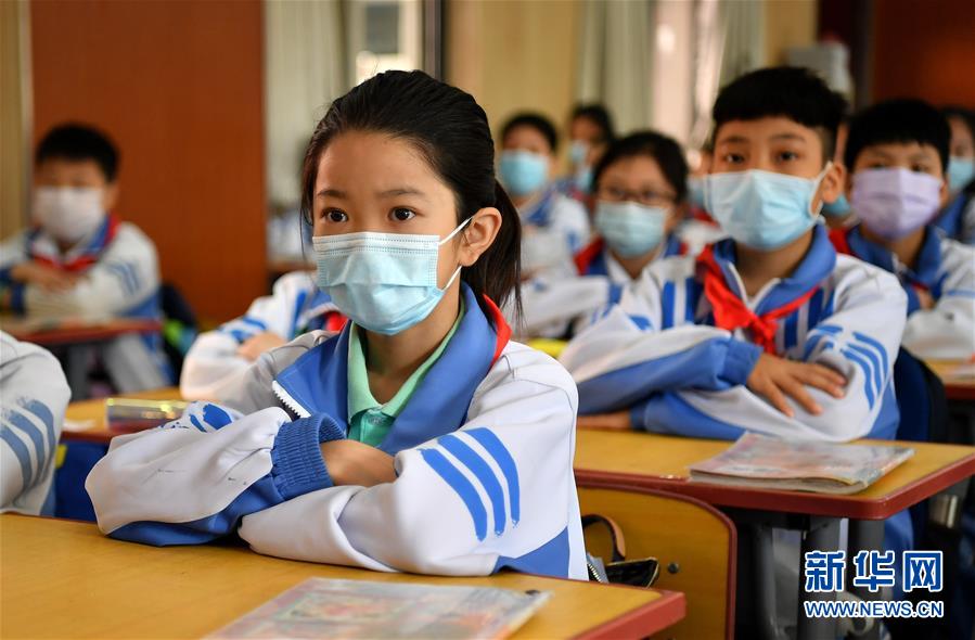 4月27日,陕西师范大学锦园小学的学生在教室内上课。 当日,陕西省西安市小学4至6年级学生开学复课。 新华社记者 刘潇 摄
