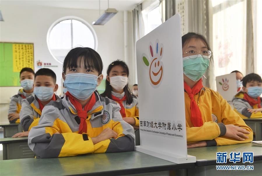 4月27日,在位于成都市青羊区的西南财经大学附属小学,学生在上课。 当日,成都市小学五六年级开学复课。 新华社记者 刘坤 摄