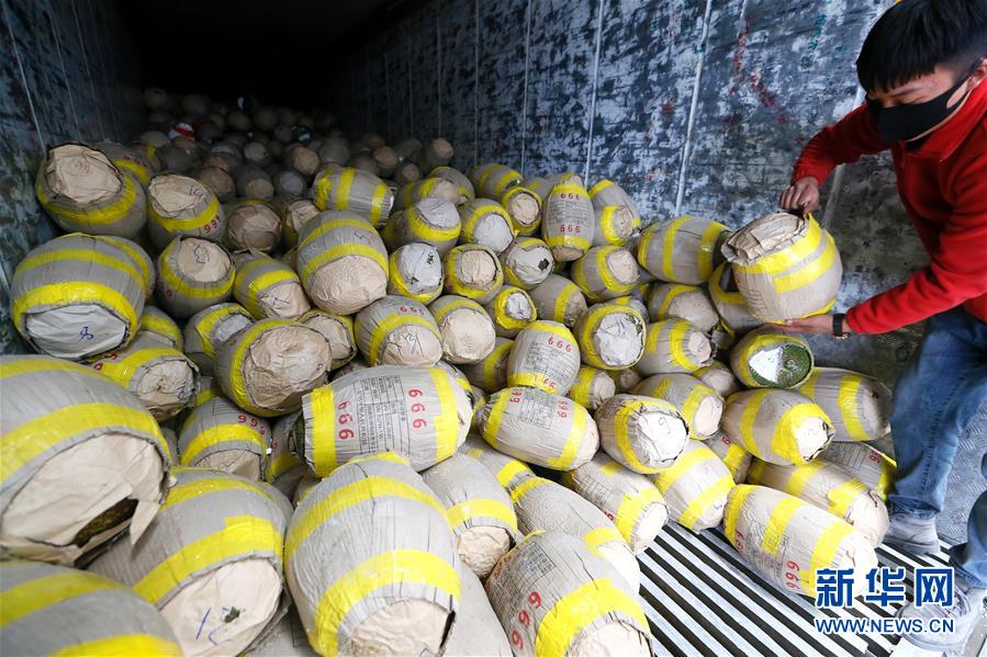 4月27日,工人在山东青岛东方鼎信国际农副产品交易中心搬运来自越南的菠萝蜜。新华社发(梁孝鹏 摄)