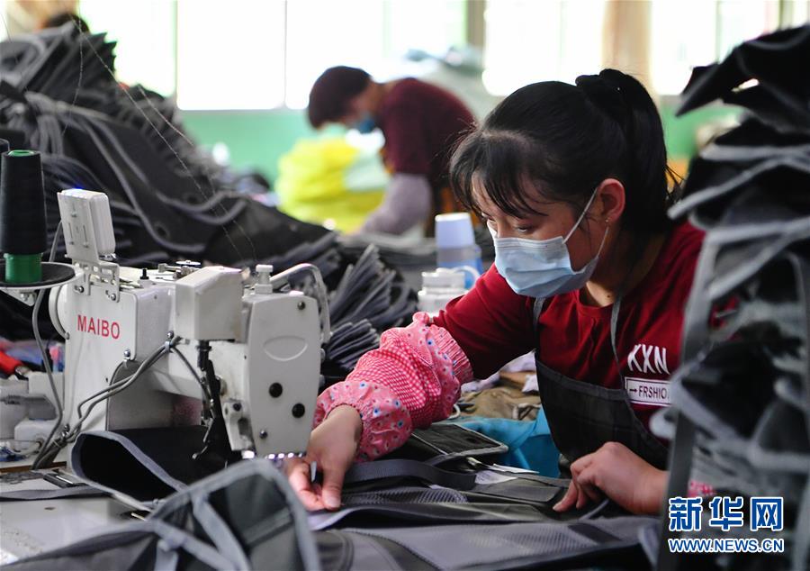 4月27日,在位于莆田市城厢区的一家旅游户外用品出口代工公司生产线上,工人们在抓紧生产。 福建省莆田市在狠抓疫情防控工作的同时,落实24小时重点企业用工调度保障机制,扎实做好各项稳就业工作,制造业企业用工形势逐步趋稳。据莆田市对重点企业实行的失业动态监测数据显示:145家制造业企业2020年3月末在岗人数为80404人,到岗率100%;一季度增员总人数3330人,一季度减员总人数3256人,用工总人数保持基本平衡,呈现就业逆势微增长现象。 新华社记者 魏培全 摄