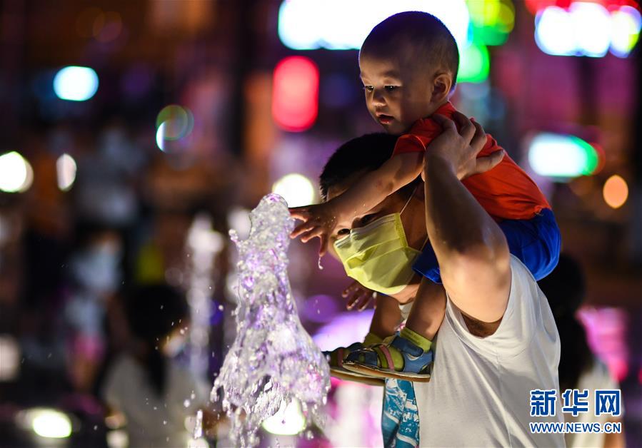 小朋友和家人在广州鹤洞路一处小型喷泉玩耍(5月4日摄)。 “五一”小长假,广州迎来连续高温天气,孩子们在室外嬉戏玩耍,找寻一丝清凉。《中国天文年历》显示,北京时间5月5日8时51分,迎来二十四节气中的“立夏”。 新华社记者 邓华 摄