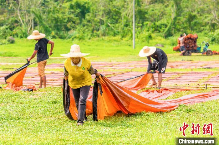 工人们正在晒场工作。 何华文 摄