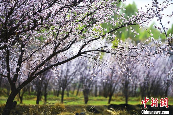 图为粉白艳丽的杏花俏立枝头。 郑耀德 摄