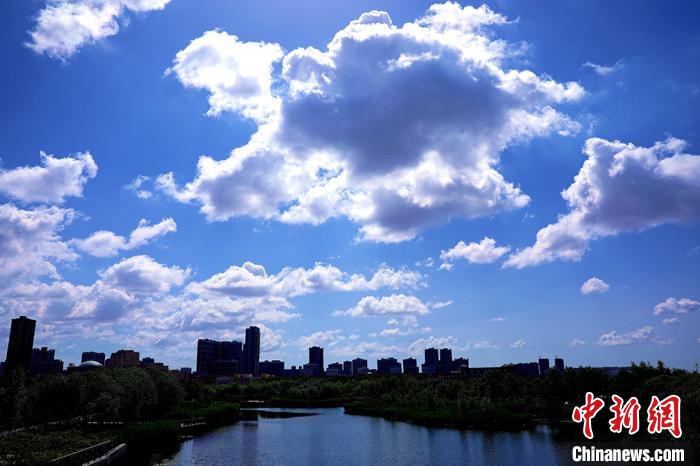 雪白的云朵以碧蓝的天空为底色。 杨厚伟 摄