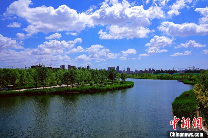 初夏新疆博斯腾湖美景如画 色彩斑...