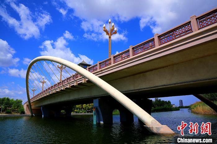 初夏新疆博斯腾湖美景如画 色彩斑...