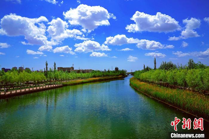 初夏新疆博斯腾湖美景如画 色彩斑...