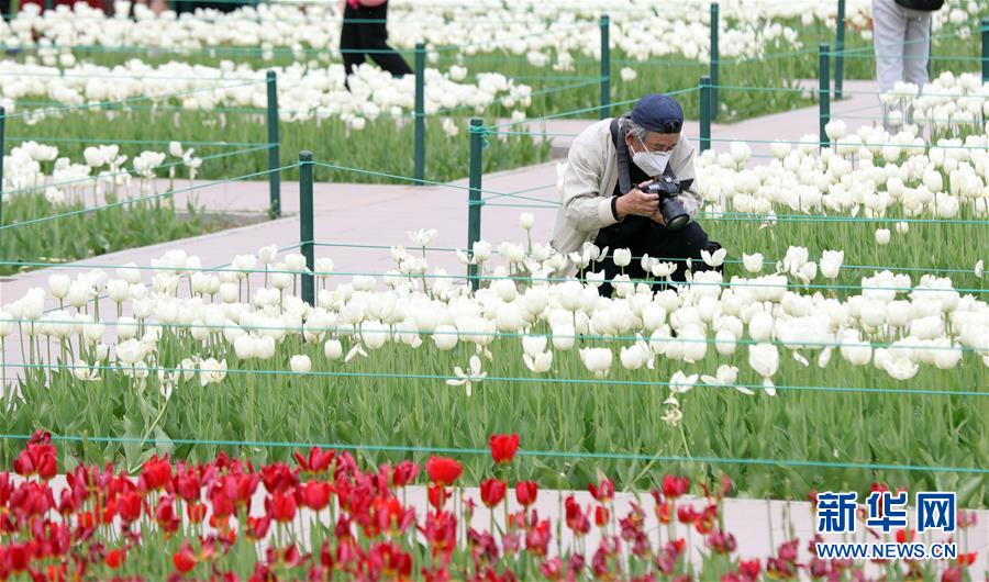 5月7日,摄影爱好者在沈阳市和平区沈水湾公园拍摄郁金香。新华社记者 杨青 摄