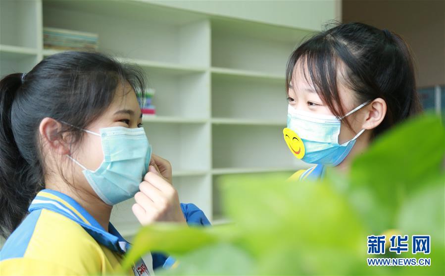 5月7日,河北省邢台市第十中学初三年级学生相互佩戴微笑卡迎接“世界微笑日” 。
