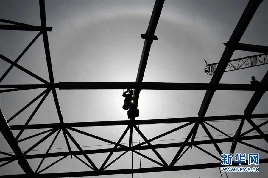 5月8日,工人在黑龙江省哈尔滨极地馆二期项目施工现场作业。 时下,黑龙江省各重大项目施工现场一片繁忙景象。 新华社记者王建威摄