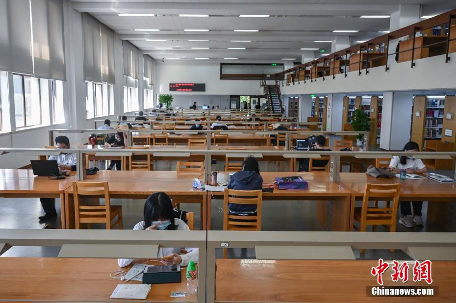 5月12日,北京,读者在中国国家图书馆馆内阅读,相互之间保持一定距离。当日,中国国家图书馆有序恢复开馆,实行预约入馆制度。读者到馆前需通过微信公众号“国家图书馆服务号”或拨打电话按服务点分时段、实名预约未来三天的到馆名额,每日限额1200人。入馆时读者需接受体温检测并出示本人预约码与健康码,入馆后读者需全程佩戴口罩,并与他人保持1米以上的安全距离。中新社记者 张兴龙 摄