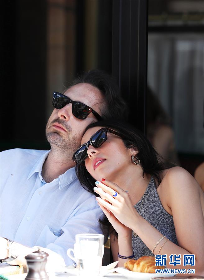 6月2日,在法国巴黎,一对情侣在花神咖啡馆露天就餐区域就坐。 法国6月2日起进入解禁第二阶段,全国除法兰西岛大区、海外属地马约特岛和法属圭亚那为“橙色区域”外,其余地区均为疫情较轻的“绿色区域”。自2日起,餐馆、酒吧等可重新开门营业,但位于“橙色区域”的餐馆和酒吧仅可开放室外座位,禁止在室内用餐。 新华社记者 高静 摄